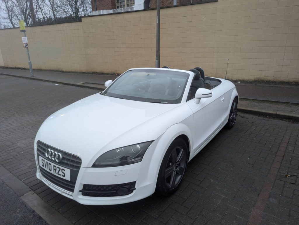 10 Plate Audi TT convertible in white with black leather interiorManual – Petrol – 200 Bhp Turbo129,500 milesMOT to 03/02/2027Comes Serviced – Folder with Detailed Service History2 KeysRoof is watertight and in good conditionCar in good condition – runs smoothly4 Previous Keepers£395/Year Road TaxLEZ Compliant