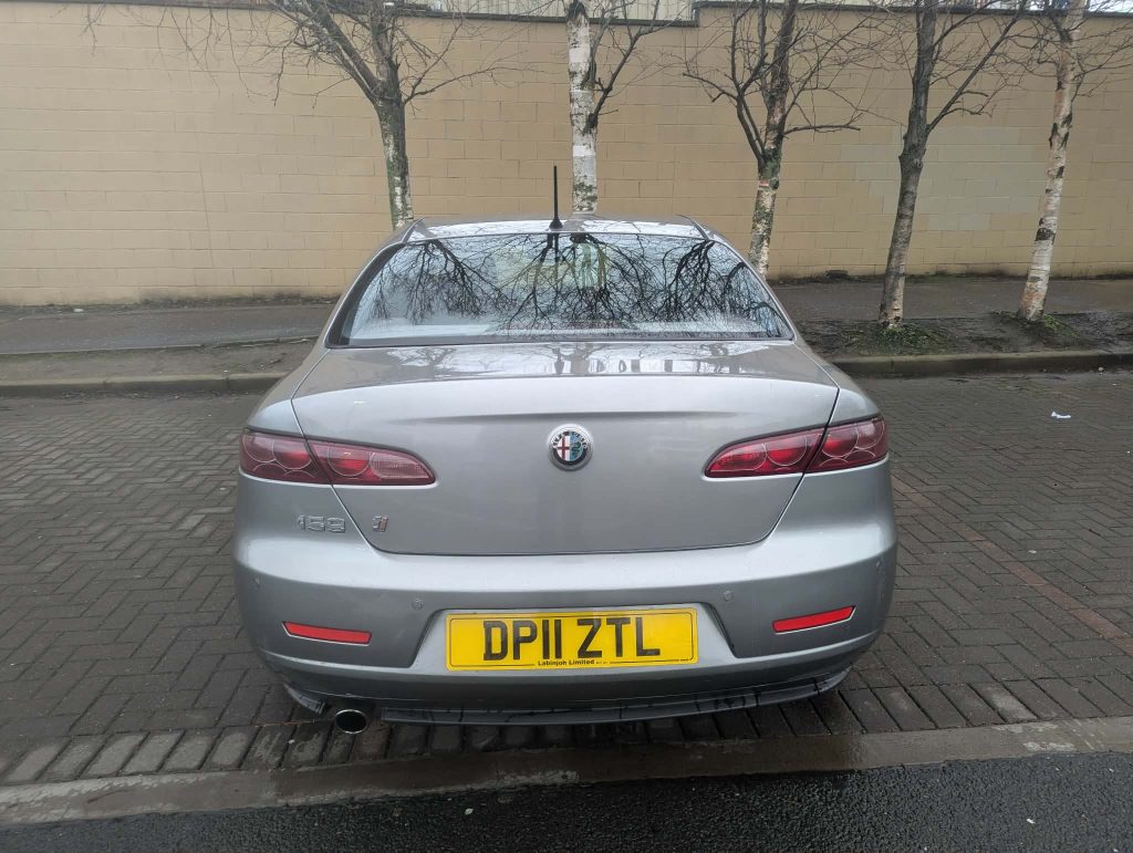 11 plate Alfa Romeo 159 2.0 JTDM in grey metallic with black leather/momo interior.